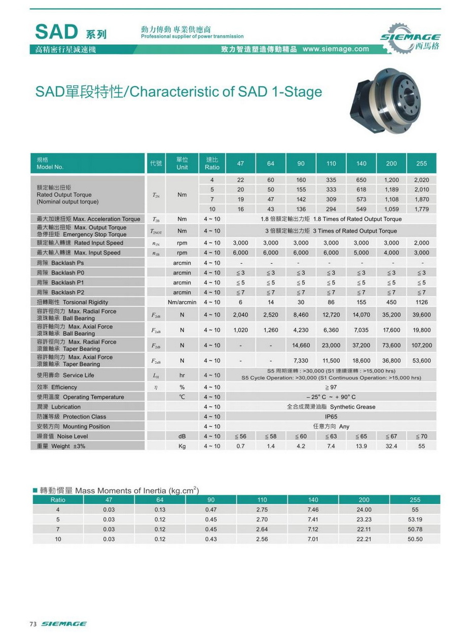 西马格SAD减机减速比: